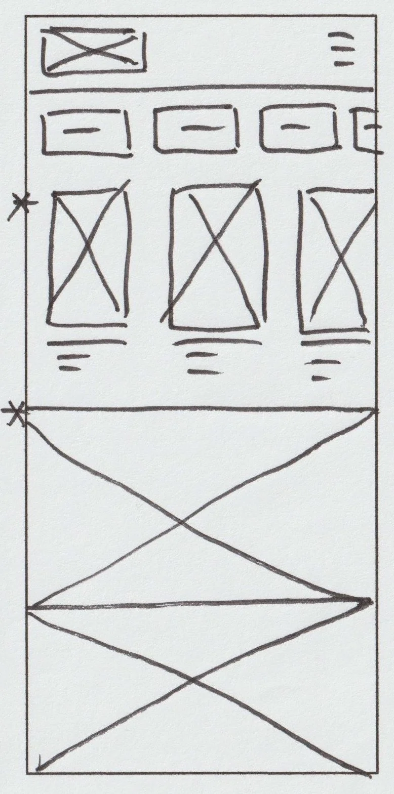 My goal was to make the homepage clear and easy to navigate. I began by sketching out various ideas of how the homepage might look (shown below), focusing on generating a lot of different possibilities. Then I iterated on these designs to refine them down to one design, repeating this process with the remaining key pages.